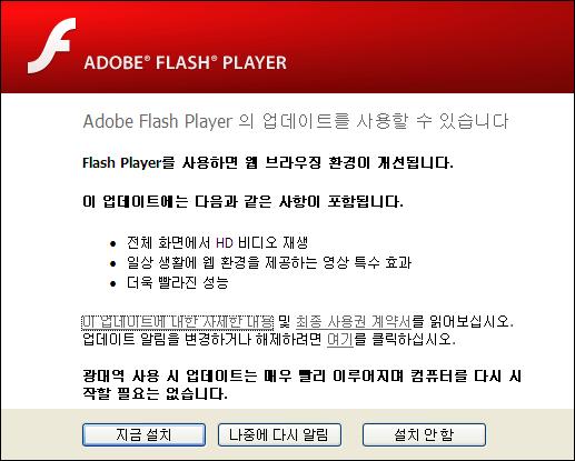 그림 2 Adobe사의 Flash Player 업데이트
